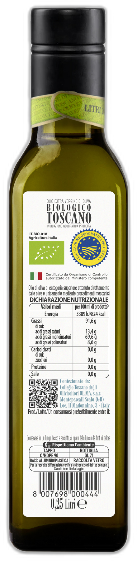 CONFEZIONATO DA: Collegio Toscano degli Olivicoltori OL. MA. S.a.c. - Loc. Madonnino 3, 58 035 Braccagni (GR).